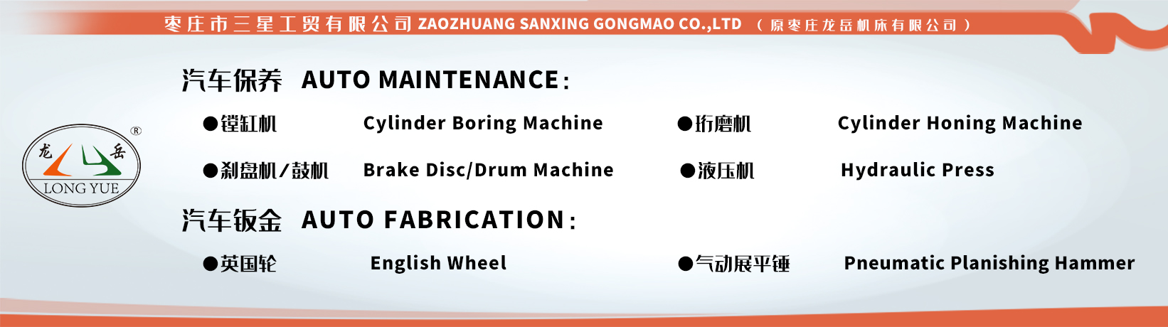 棗莊市三星工貿有限公司一家股份制企業(yè),通過(guò)重組接管原棗莊龍岳機床有限公司(棗莊機床廠(chǎng))全部廠(chǎng)房、設備和部分骨干職工以及全部產(chǎn)品、工藝流程。公司將繼續擴大生產(chǎn)、經(jīng)營(yíng)原棗莊龍岳機床有限公司的汽保設備。產(chǎn)品銷(xiāo)往全國各地并出口世界各個(gè)國家和地區。主要產(chǎn)品有系列立式制動(dòng)鼓鏜床、系列臥式車(chē)盤(pán)機、系列立式鏜缸機、氣缸珩磨機、飛輪盤(pán)磨床、小型立式插床等。